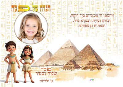 בצירוף עמוד שער מעוצב בשילוב תמונת הילד שם הגן והקדשה.